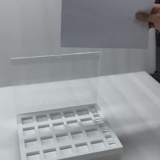 Every display has a clear acrylic backing that accommodates a 8.5" x 11" marketing piece. Revive7 Beauty will send updated marketing pieces 3 or 4 times per year.